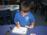 On the left Isaiah is practising his writing of words. On the right is Sohill and he is matching his words. The work is Room 1 never stops. These children are learning to read and write words today, but next week it will be chapter books!